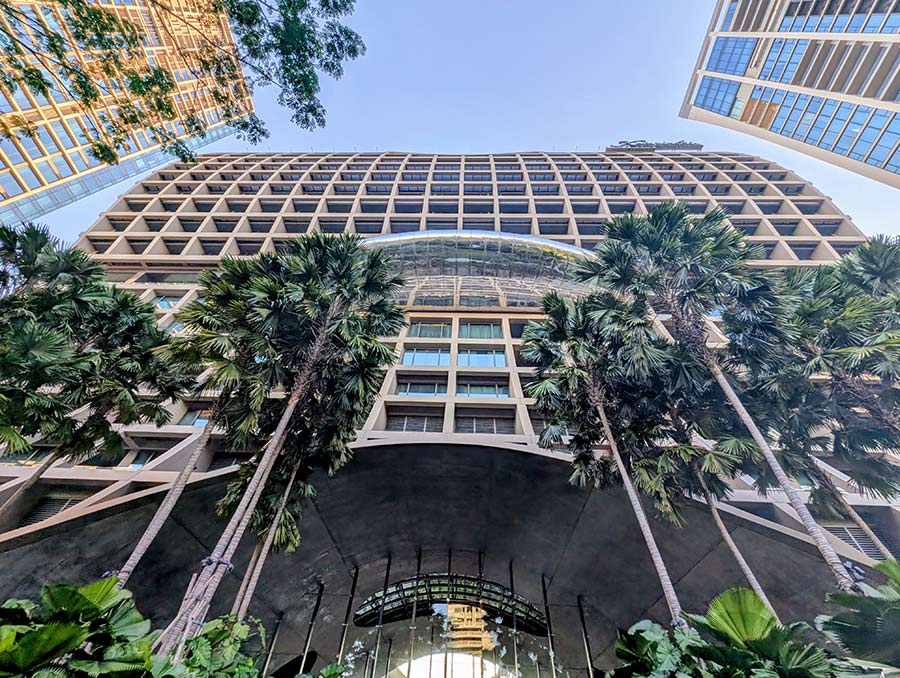 The building is engineered to allow a continuous natural airflow through the lobby. As you walk in, there is a gentle, constant movement of air — not aggressive air-conditioning, not humidity, but a controlled circulation that immediately cools the body and lowers sensory stress.