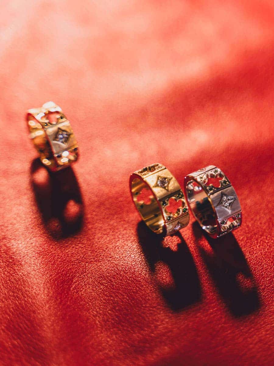 The Venetian symbol is found throughout Venice. Inspired by its design these modern alternative wedding rings. These rings are a unique expression to share with your future loved one.