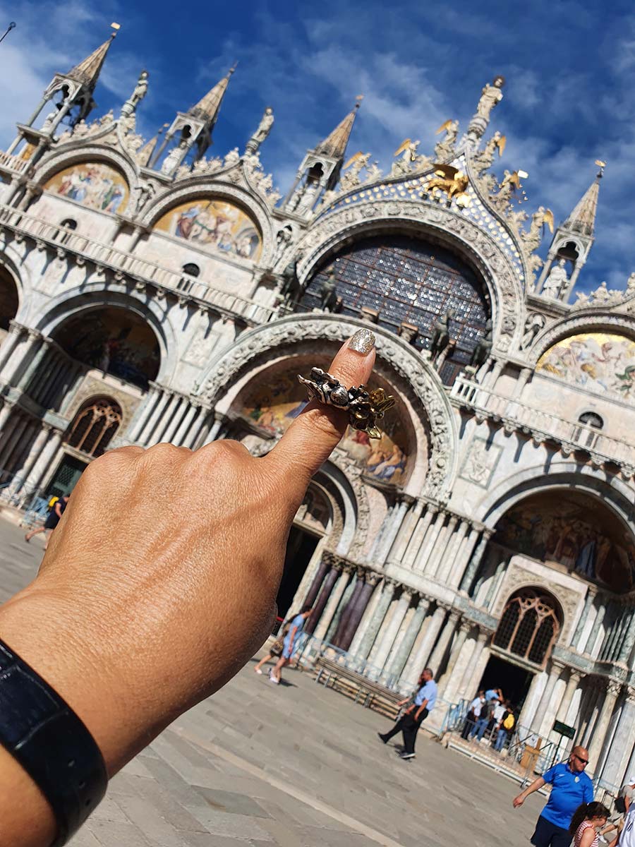 Valeria has the absolute freedom to customize your design and create the jewellery of your dreams. Her personalised and dedication to unique designs is a wonderful experience both to the customer and her. She will go through step by step, detail by detail the process to ensure you walk away with a part of her heart, soul, mind with you in Piazza San Marco. If there is a boasting moment when your family, friends and work colleagues ask you where did you get your ring? How enchanting will your response be? I had it custom made for me next to St. Mark’s Basilica and the Doge’s Palace.