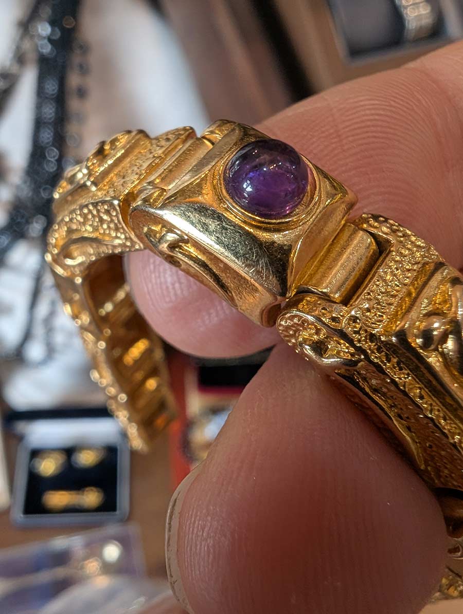 If you’re new to thumb rings, wear it alone for a few days before introducing other rings. Let your eye adjust. Then add the Versace ring. Then add bracelets. Build the look in layers just like you would with clothing.