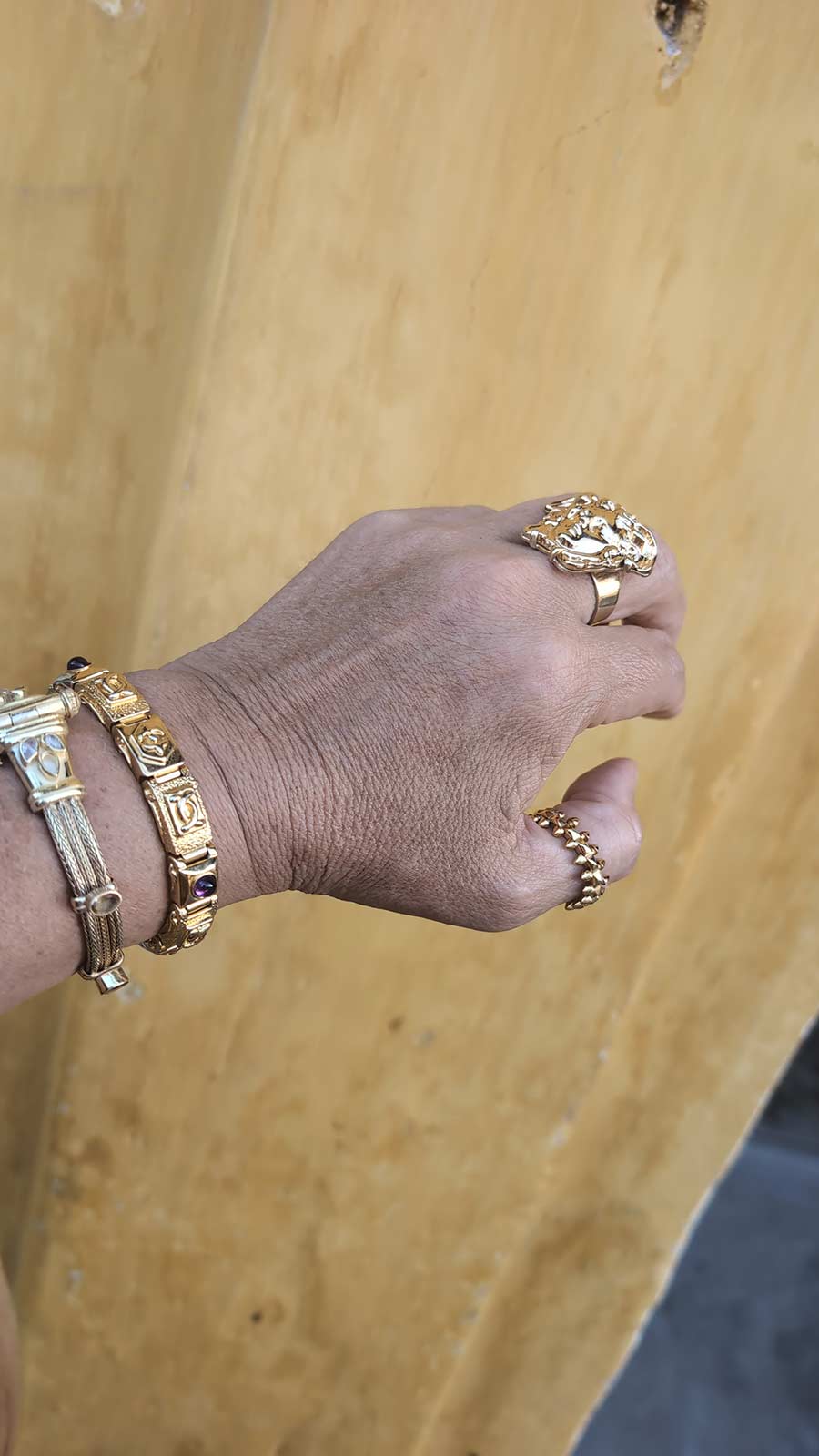 Now for the power move: pairing your Cartier-inspired thumb ring with a Versace gold ring on another finger. This is where contrast becomes style.
