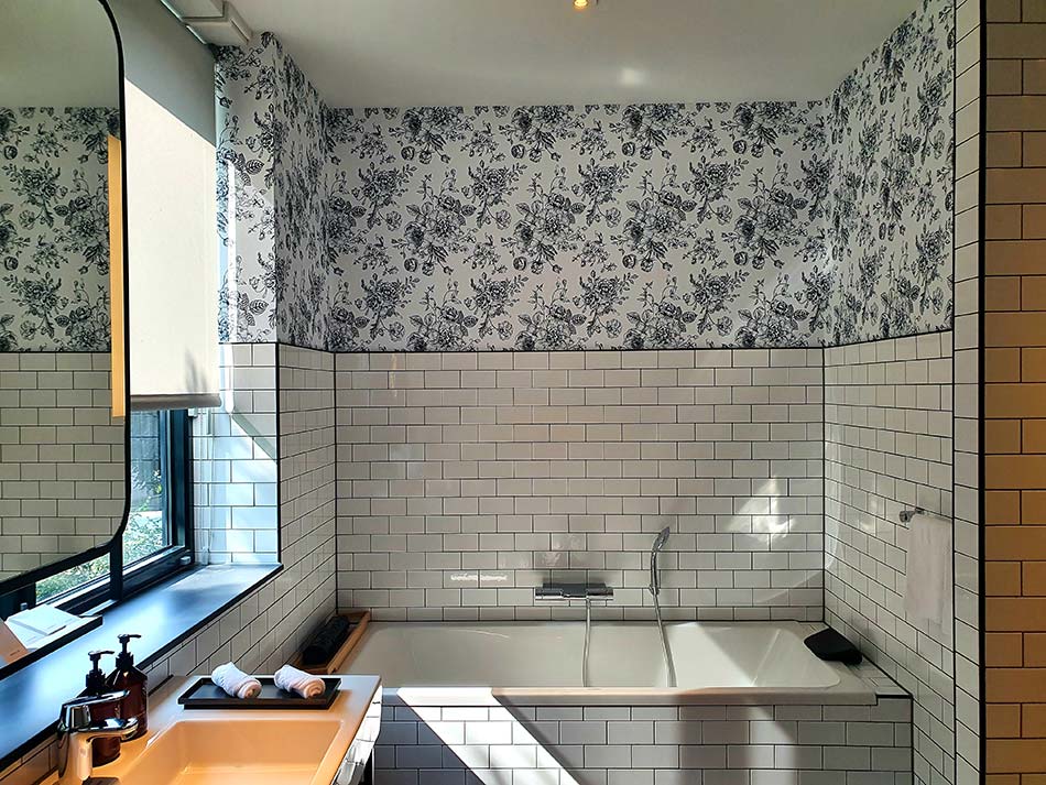 In the last few months, I have reviewed fifteen hotels in Italy and in Holland. What I am noticing is the new bathroom wellness trends for guests. From Dior inspired wallpaper or colour tiles clashing, that puts me into overdrive relaxation.
