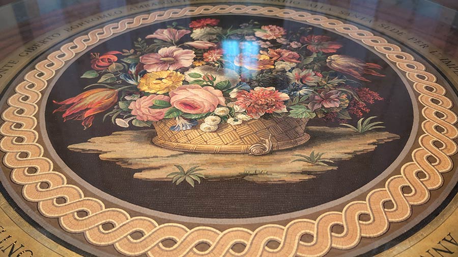Moisac table, tiny tiles to form this image, it’s just gorgeous.