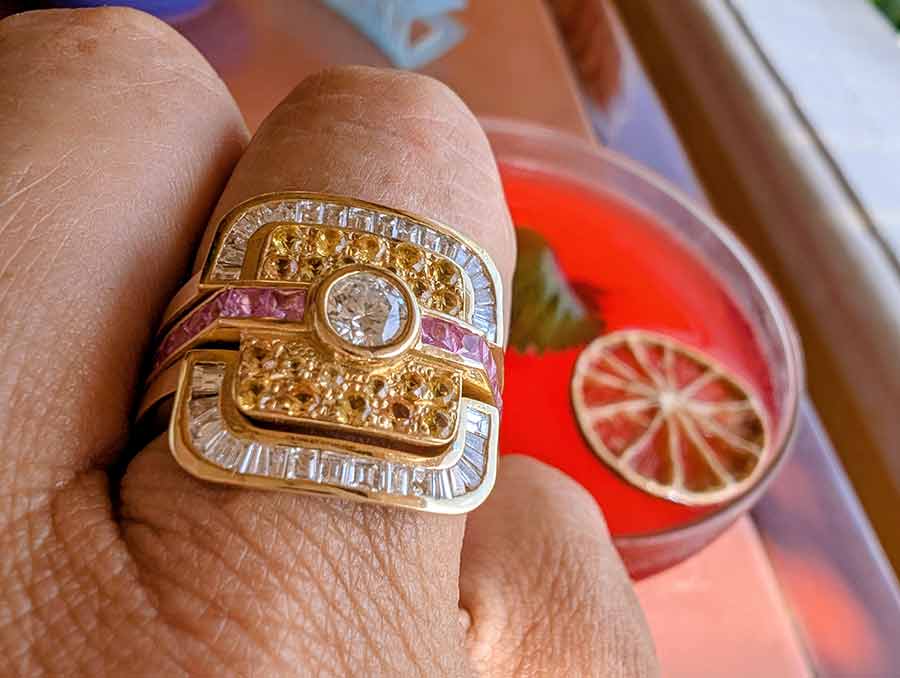 The ring is never just about the stone. It’s about how it sits on the hand, how it catches light in tropical sun versus European dusk, how it feels when I gesture, when I hold a glass, when I move through a room.