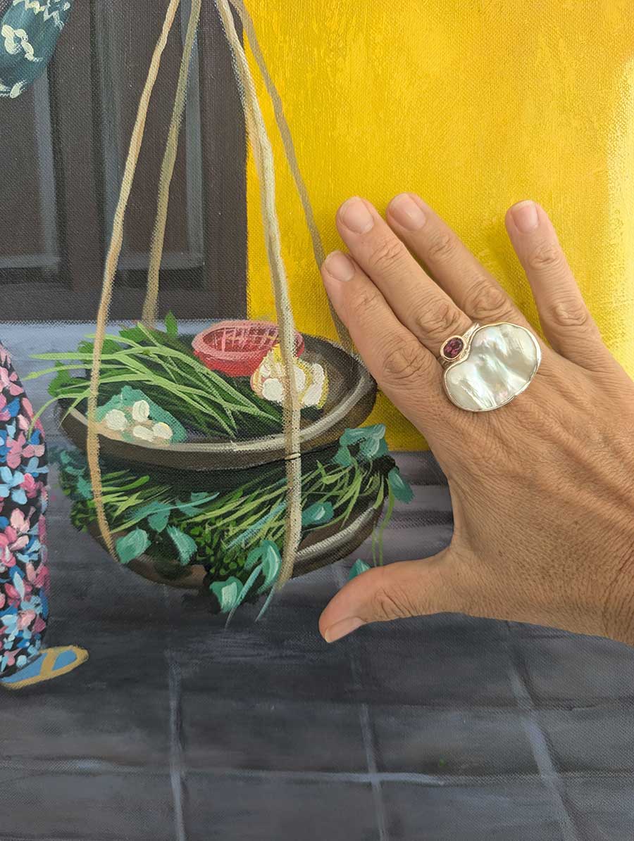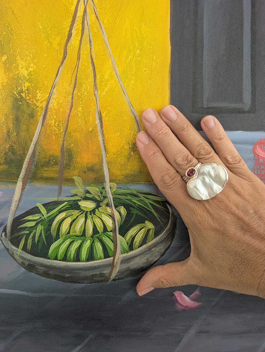 Wear on the index or middle finger for maximum impact. Pair with monochrome outfits, linen sets, black tailoring or relaxed resortwear. Keep other jewellery minimal to let the ring stand out.