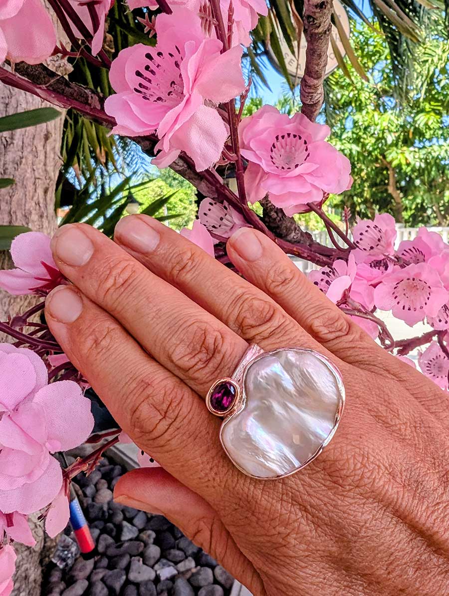 This ring is about confidence, not conformity. It brings together raw gemstone energy and ocean-born beauty in one sculptural design. Strong, artistic and timeless, it is made to be worn, noticed and remembered.