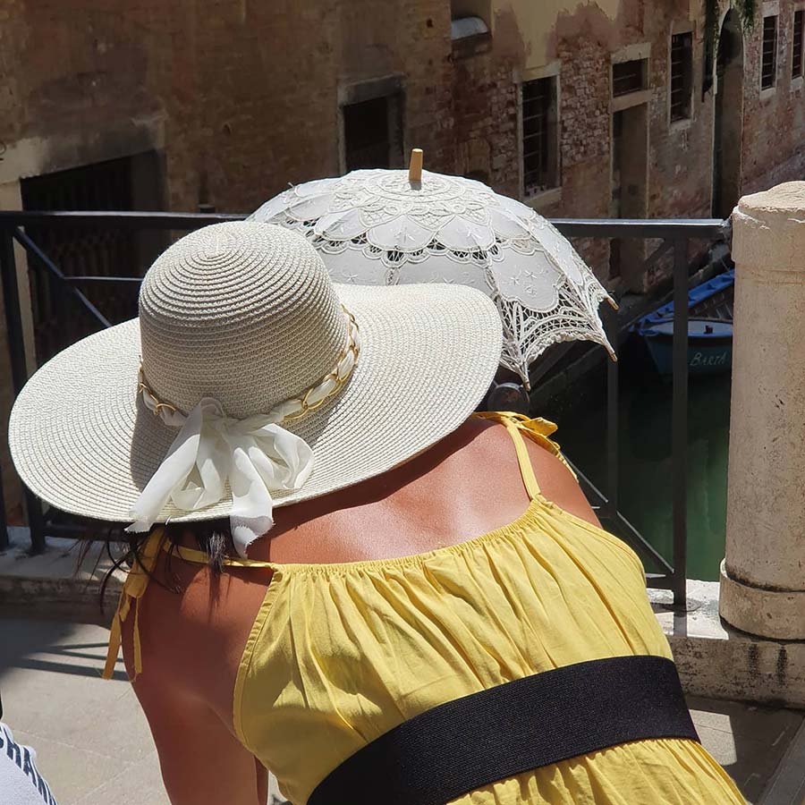 Looking for a bright summer dress? Trinny Woodall, style guru for the UK talks about how to match yellow as a capsule wardrobe. But here in Venice, Italy it is a scorching summer and we didn’t need any style tips on how to wear yellow. From yellow hats to dresses the colour yellow will brighten up anyone’s day.